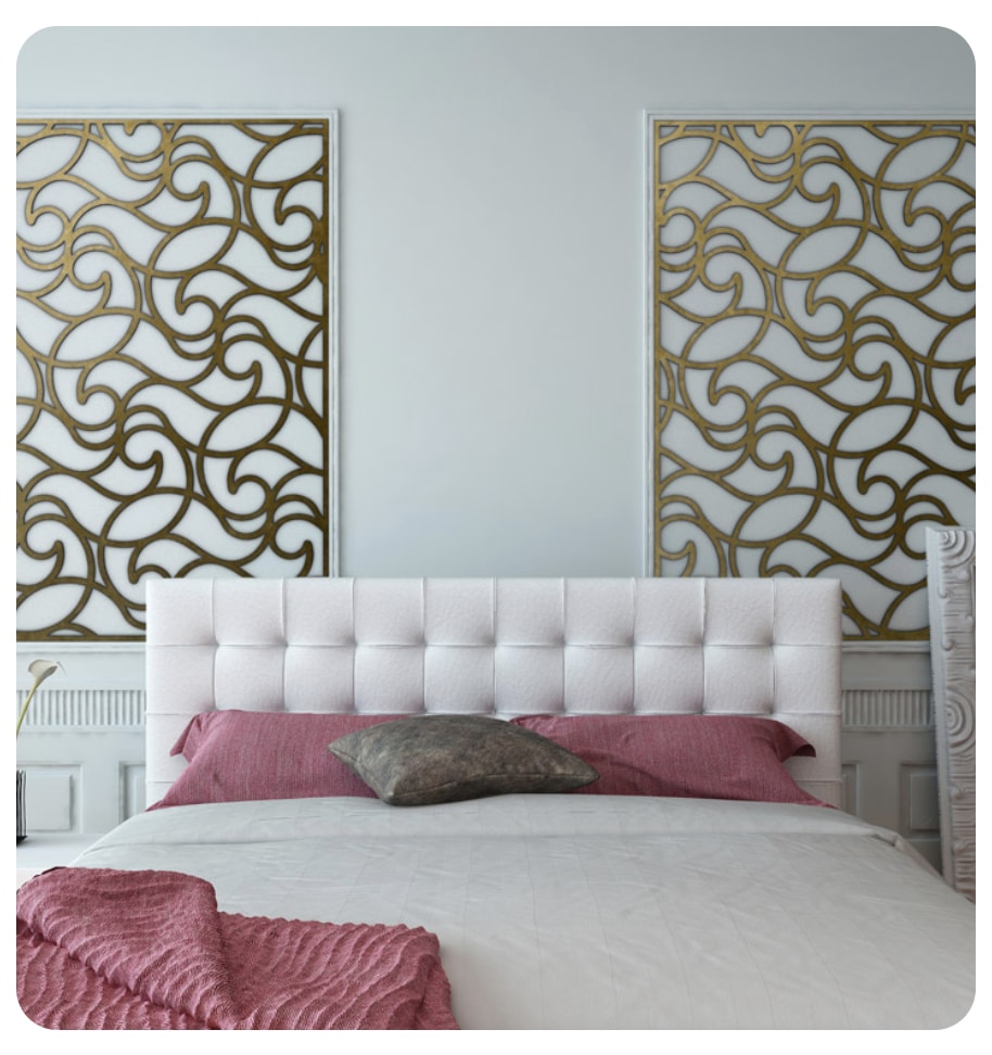 Decorative grilles add luxury and character, allowing personal expression with custom designs, patterns, and finishes to match any decor style. As window treatments they serve both as stunning visual elements and can also facilitate airflow and light diffusion. Light filtering will help you maintain a balance between privacy and openness.