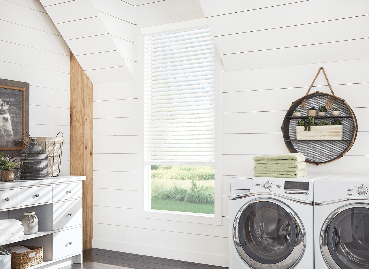 Faux wood blinds are available in a variety of finishes and are a very cost effective alternative to wood.